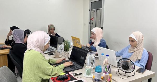 It’s been five months since Hiba Al Tibi, a 32-year-old divorcee, started freelancing at Taqat, a business incubator and co-working space, in Gaza city. Working as a graphic designer, video editor and data entry specialist, she spends about eight hours a day at the space completing assignments for clients in Egypt, Sweden and soon France.